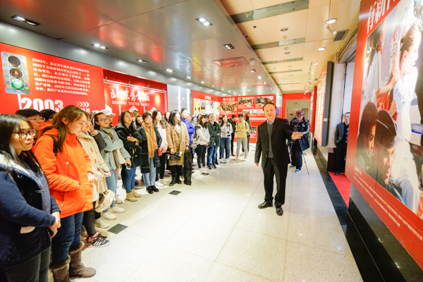 首先张延平社长带领师生们参观了北京青年报社展厅,张社长在现场耐心详实地向同学们讲述北京青年报的发展历程,从开始的艰辛到后来的辉煌,无一不显示出北青报作为一家有影响力的媒体所秉持的信仰和执着的求索。随后同学们在刘鹤副总编的带领下参观了报社新媒体部门、照排中心等,亲身体验的方式更激发了同学们对媒体的热情。