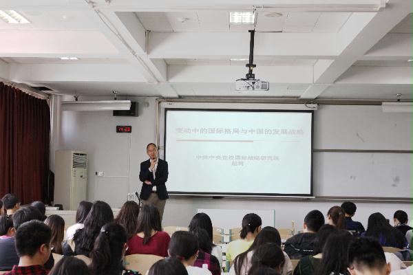为加强师生十九大精神学习,深入领会十九大报告精神,4月24日下午14时,在人文楼428教室,365bet网上投注党总支共同邀请中央党校国际战略研究所赵柯副教授,做了主题为变动中的国际格局与中国的发展战略的报告,进行了一次特殊的党课学习活动。活动由365bet网上投注党总支书记高凌云主持,来自365bet网上投注和兄弟院系的师生100余人参加此次党课学习。 赵柯副教授纵观历史长河,以清晰的脉络梳理了中国改革开放四十年的发展历程。“四十年来,我国在改革开放的大路上不断突破,在经济发展上取得了重大成就,GDP从40年前占世界比重的3%-4%,跃升至现在的15%。”他介绍,在当今世界经济全球化的趋势下,中国正迎风而上,积极打开国门,在世界市场上寻求合作共赢,扮演着“世界工厂”和“世界市场”的角色,成为了国际经济发展的重要推动力之一。 通过对中国长期发展历程的纵览,在场师生加深了对我们党在奋斗过程中取得的历史性成就的认识,促使师生更好地把自己个人的前途、发展,与国家、民族的命运紧密地联系起来,为实现最伟大中国梦而奋斗。 “理论联系实际,历史联系当前。”要正确看待当今变动中的国际格局,培养国际视野,首先需要加强对国际问题的认知与理解。基于此,赵柯副教授就当今的全球性焦点问题——“核武器危机”、“恐怖主义威胁”、“中美贸易摩擦”等为师生进行了介绍与分析。同时,赵柯副教授强调:“和平发展是当今整个世界发展的主流趋势,中国更要顺应、引领时代潮流,与世界融合,坚持自己的发展道路。” 赵柯副教授逻辑清晰且有条理的精彩讲解引起了师生的深度思考。通过本次学习师生纷纷表示,深受鼓舞,收获良多,深化了对于十九大精神和中国发展战略的理解。在今后的学习工作中要树立坚定的信念与远大理想,发挥表率作用,把十九大精神转化为实际行动,努力工作,刻苦学习,勇于担当,不忘初心,牢记使命。